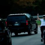 Una ciclista le hizo mala seña a Donald Trump cuando pasó al lado de su caravana y su equipo de seguridad. La fotografía se...