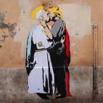 Aparece en el centro de Roma un dibujo del papa y Trump besándose