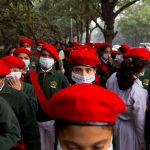 Cientos de estudiantes piden aire limpio en Nueva Delhi