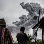Erupción de ceniza del volcán Sinabung en Sumatra