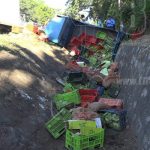 Cuatro personas heridas por vuelco de camión cargado de verduras y frutas en León