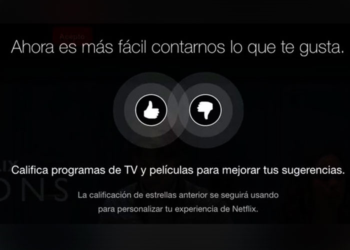 En lugar de entre una a cinco estrellas, ahora se optará por el pulgar hacia arriba o hacia abajo. El cambio, presentado oficialmente el miércoles, busca obtener mayor una respuesta de los espectadores para ayudar al servicio a mejorar sus recomendaciones.