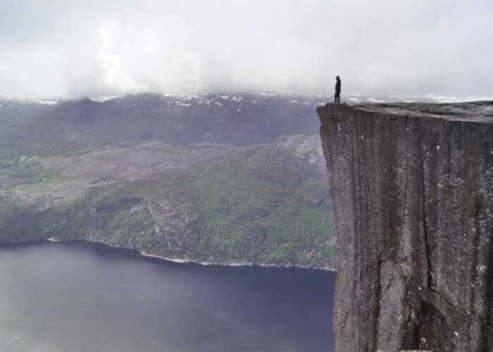 El acantilado de Preikestolen es una de las mayores atracciones turísticas de los fiordos, con más de 600 metros de altura promete unas vistas impresionantes del lugar (no apto para viajeros con vértigo).