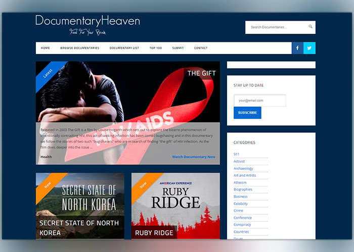 Este género cinematográfico puede llegar a mostrarnos lo mejor y lo peor del mundo, y no por nada tiene seguidores bastante pasionales. Si eres uno de ellos y no te basta con la oferta de documentales que hay en internet en sitios de streaming como Netflix y demás, en Documentary Heaven tienes una gran librería a tus disposición.