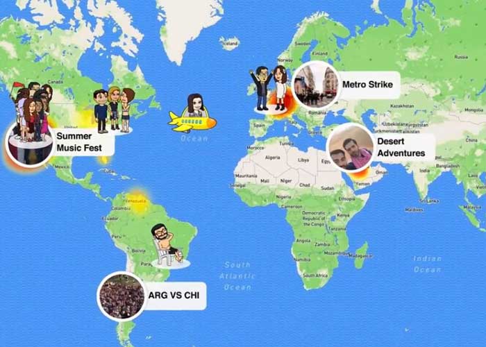 La aplicación móvil Snapchat presenta el lanzamiento de la nueva función Snap Map a través de la cual los usuarios pueden compartir sus ubicaciones físicas en un mapa, decidir si quieren compartirlas con todos sus amigos, con algunos de sus amigos, o bien no estar disponible para nadie a través de su Modo Ghost.