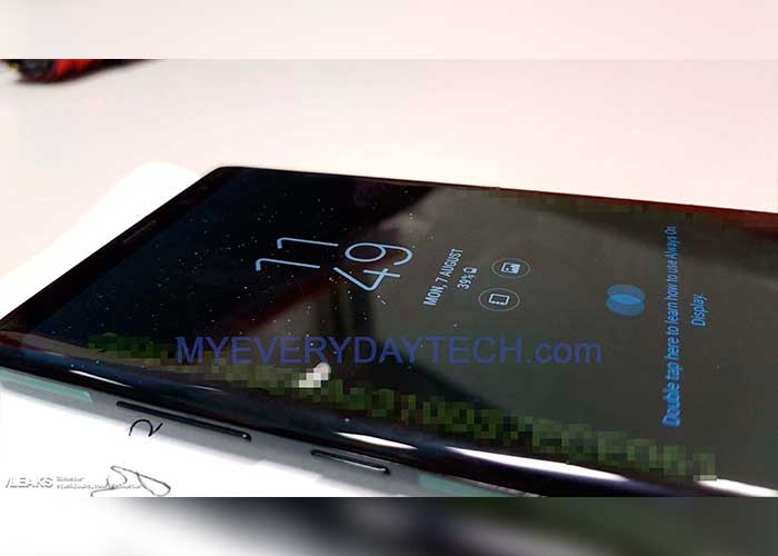 Se acabaron las imágenes renderizadas y la lista de especificaciones sin imágenes para contrastar. Alguien ha fotografiado al nuevo Galaxy Note 8 y no ha dudado en compartirlo con todo el mundo a través de internet. El resultado es justo lo que ves sobre estas líneas, un terminal extremadamente alargado (no sabemos si exagerado al hacer la foto) con pantalla 18,5:9 y con un aspecto estético similar al Galaxy S8.