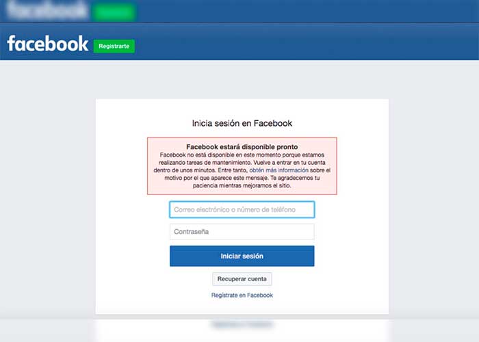 Algunos publicaron en Twitter imágenes que señalan que Facebook está bajo “mantenimiento” y que volverá pronto.