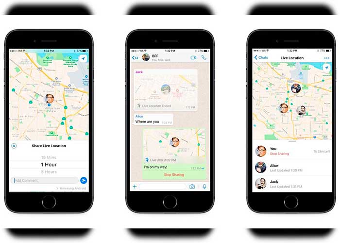 La función fue filtrada hace ya unos meses, y no es exactamente igual que la clásica de compartir ubicación. La diferencia fundamental es que la opción clásica sólo envía la ubicación en la que estás en el momento de compartirla, mientras que la de tiempo real, como indica su nombre, permite que la otra persona sepa por dónde te estás moviendo.
