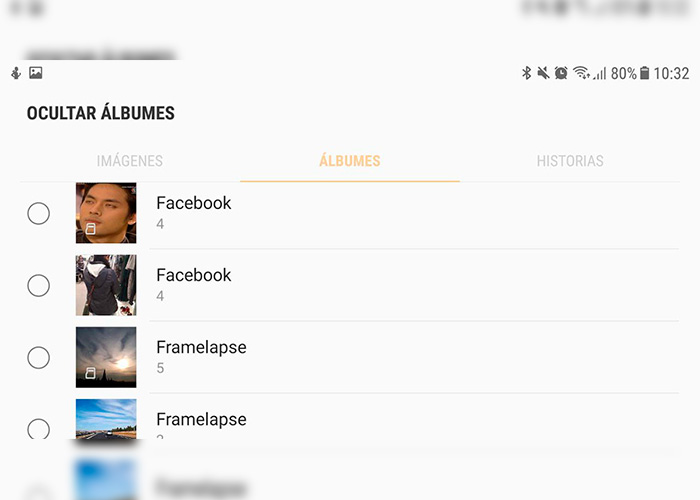 Aunque para enviar un álbum de fotos a la carpeta segura necesitas primero seleccionar un álbum de fotos y después usar el menú, para ocultar álbumes con la nueva opción el orden es inverso: primero debes usar el menú y luego seleccionar los álbumes.