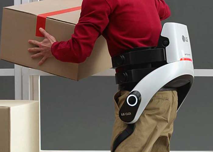 Levantar peso durante mucho tiempo produce fatiga, agujetas y, en algunos casos también puede provocar lesiones graves en la espalda. Esto es un problema entre los trabajadores cuya tarea es principalmente esa: mover grandes pesos de un lado para otro. Para ayudarles en su quehacer diario, LG ha presentado un exoesqueleto LG CLOi SuitBot, que ayuda levartar peso y doblar la espalda.