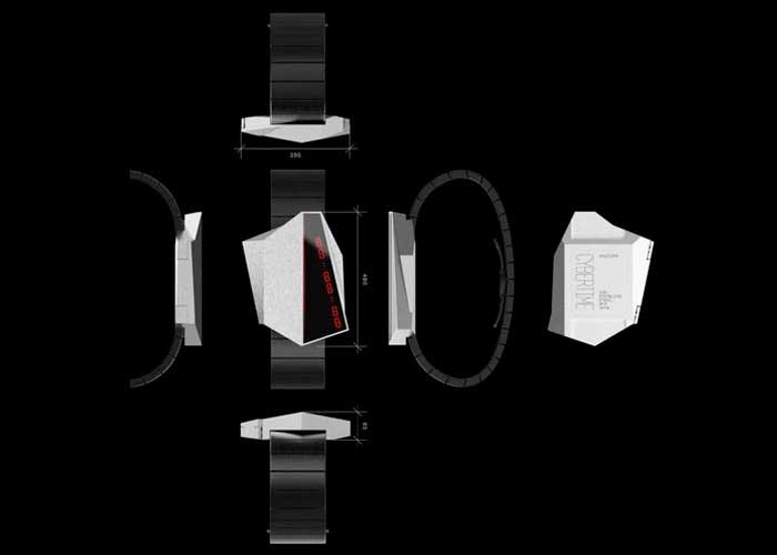 Cybertime está formado con un cuerpo de acero inoxidable poligonal para una apariencia vanguardista y futurista. Haciéndose eco de las vibraciones Cyberpunk de Blade Runner, cada componente visual está hecho para un toque cibernético.