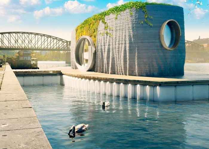 Un escultor checo se asoció con un grupo de arquitectos para crear un prototipo de casa-jardín flotante impresa en tres dimensiones, que podría convertirse en una casa de vacaciones en el futuro.