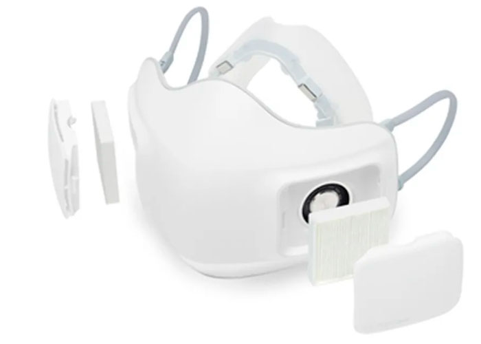 La mascarilla incluye un estuche que usa luces ultravioletas para desinfectarla. Además, el estuche carga la mascarilla y envía una notificación a nuestro móvil cuando detecte que los filtros deben ser reemplazados cuando alcancen su máximo uso.