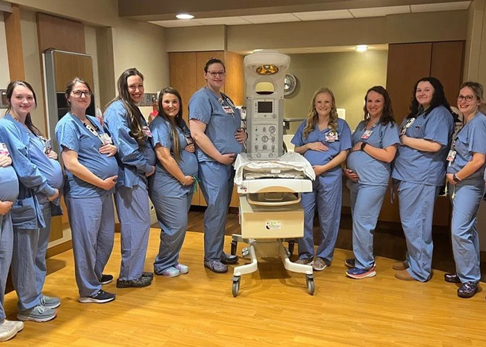Un total de 14 enfermeras de la unidad de maternidad del Hospital HSHS St. Vincent de la ciudad de Green Bay (Wisconsin, Estados Unidos) quedaron embarazadas al mismo tiempo, informó la revista People el sábado citando un reciente comunicado de prensa del centro médico.