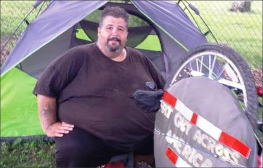 Un hombre de 254 kilogramos recorre Estados Unidos en bicicleta.