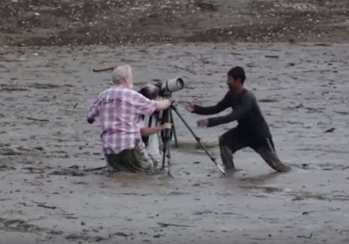 Una pareja de turistas fotógrafos y observadores de las aves fueron rescatados después de quedar atrapados en el lodo en una playa de Krabi, en Tailandia.