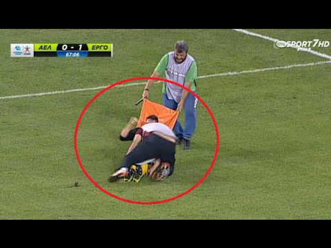 Una vez que Alexander Koutris, uno de los jugadores del Ergotelis, sufrió una lesión, los camilleros acudieron para retirarlo de la cancha y ofrecerle atención médica.