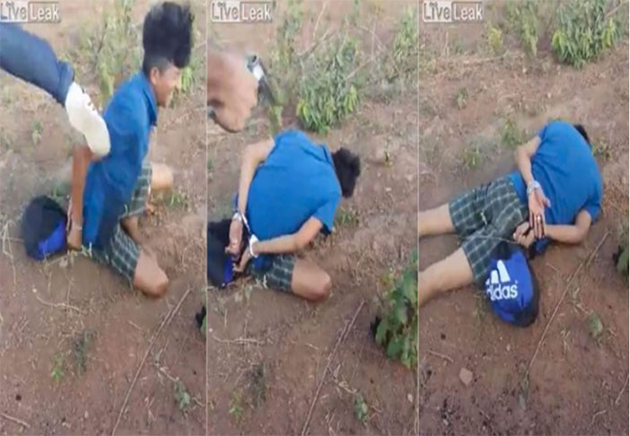 «¡Acuéstate!», le gritó uno de los asesinos al joven, que estaba esposado y sentado sobre el pasto, como no le hizo caso, le pegó una patada.