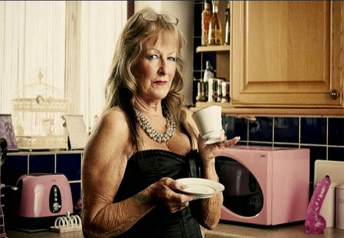Abuelitas muy sexys, en posturas sugerentes, viendo volar sus faldas como si fueran Marilyn o incluso disfrazadas de Caperucita Roja.