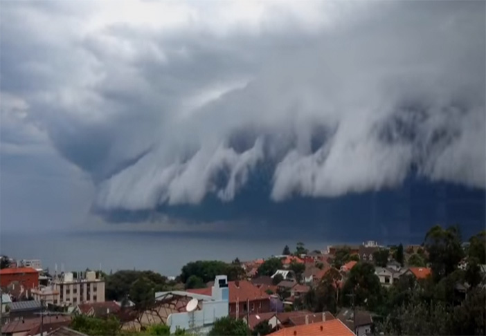 Increíble fenómeno meteorológico en las costas de Australia, en Sidney, donde una nube de tsunami se registro frente a la costa.
