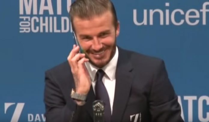 El exfutbolista inglés estaba hablando acerca del partido benéfico de UNICEF que jugó en Old Trafford, cuando sonó el celular que un reportero había puesto sobre la mesa para grabar las declaraciones.