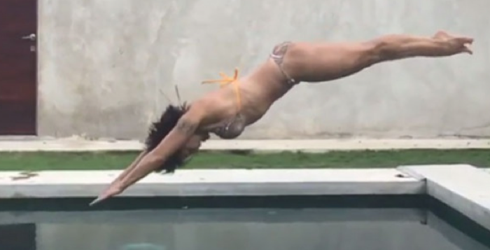 Así impactó a sus seguidores de Instagram, a quienes compartió un video en el que se puede ver a Alejandra tirándose un clavado hacia una alberca. La cámara lenta aprecia el movimiento de todos y cada uno de los músculos de su cuerpo.