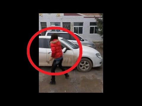 El auto, que quedó seriamente dañado, fue golpeado una y otra vez por la mujer con un pesado mazo.