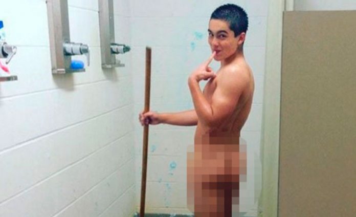 En dicha foto se le ve lucir completamente desnudo en un baño y sosteniendo una trapeador. Además, Sergio Mayer Mori hace un gesto pícaro para el lente de la cámara.
