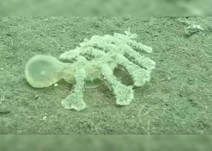Aunque parece algo fuera de este mundo, la criatura es en realidad un tipo de babosa de mar conocida como ‘Melibe viridis’, que puede crecer hasta 12 centímetros. Sus patas son similares, en aspecto, a los tentáculos de un pulpo.
