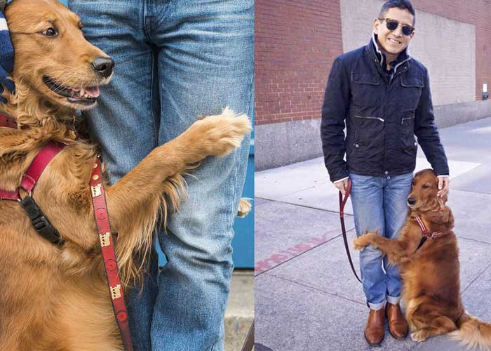 Louboutina, es una Golden Retriever que ofrece sabrazos gratuito en una esquina de Manhattan, por el vecindario de Chelsea.