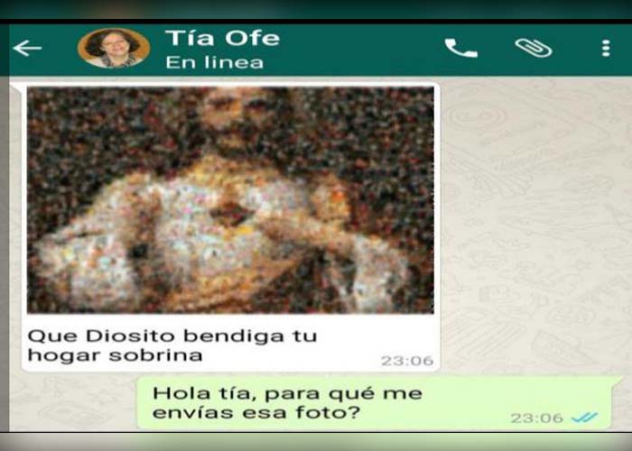 Una mujer no esperó que la imagen que estaba mandando a sus amigos y familiares estuviera compuesta por minifotografías para adultos. La conversación sostenída por medio de WhatsApp ya se hizo viral.