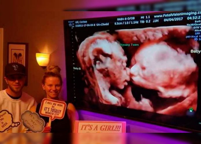 Lo que no se esperaba ninguno de los dos era ver una de las fotografías más bonitas. Randy y Carissa, embarazada de unas 25 semanas, vieron cómo las gemelas dentro de la madre, se acurrucaban juntas y se daban un beso.