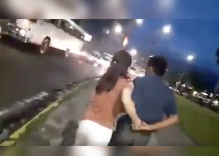 Pero como siempre hay un pelo en la sopa o más los chismosos que no pueden faltar, dos chavalos que iban pasando por el sitio y al ver los gritos de la mujer pidiéndole perdón a su "amado" decidieron sacar el arma mortal en estos tiempos, su celular y grabar todo el show que protagonizaba la pareja.