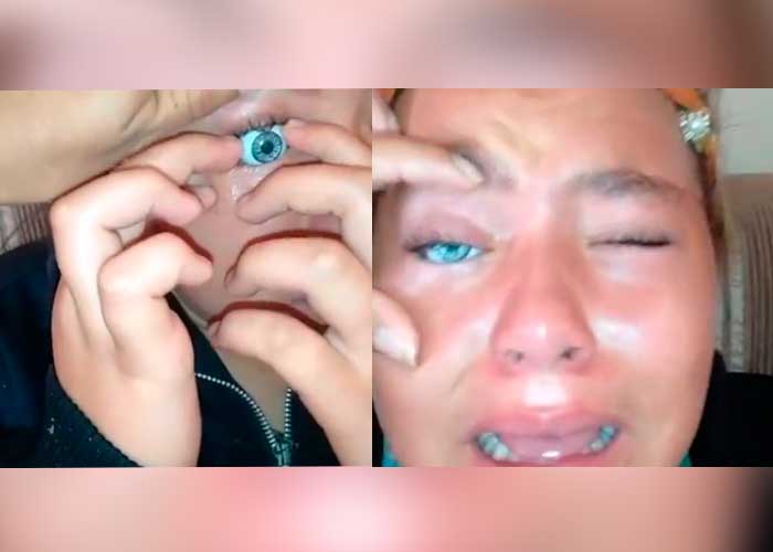 La joven quería lucir el azul intenso de las pupilas del juguete en su rostro pero no contó con que el plástico le provocaría un intenso dolor. Percatada del hecho, su madre fue a socorrerla, pero antes grabó el hecho a fin de que la muchacha escatime para la próxima.