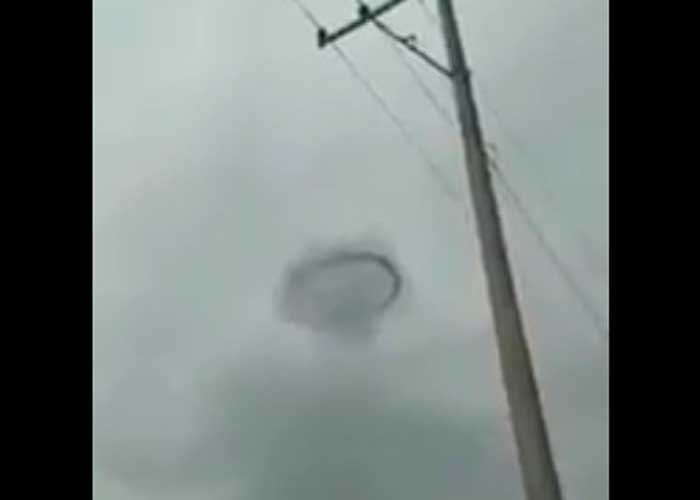 En la grabación subida a Twitter se observa cómo un enorme objeto ovalado aparece entre las nubes y hace un corto recorrido, para luego desaparecer por completo.