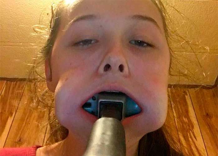 Una joven se ha convertido en la burla de las redes sociales luego de aceptar un absurdo reto que consistía en meterse la cabeza de un martillo por la boca. Ella terminó pidiendo ayuda en Twitter porque no podía quitarse la herramienta.