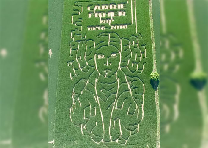 Un agricultor en el sur de Indiana que creó un laberinto en el maizal cuyos caminos delinean el rostro de la Princesa Leia dice que lo hizo en honor a la difunta estrella de "Star Wars", Carrie Fisher.