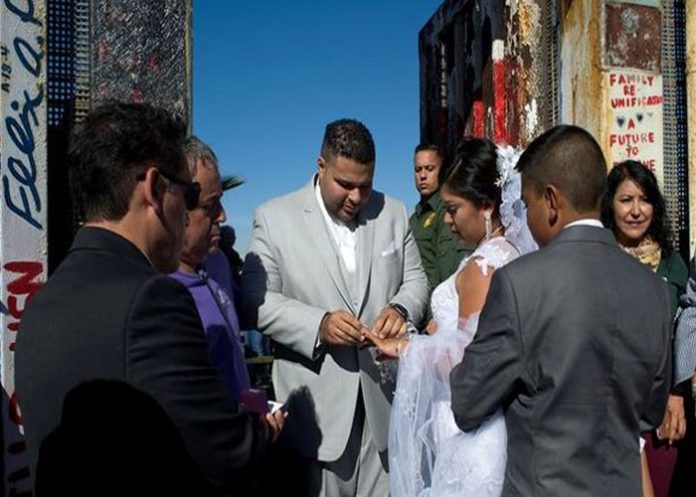 La pareja formada por Brian y Elvya contrajo matrimonio durante los tres minutos que EEUU abrió el muro fronterizo con México para permitir un reencuentro de familias, informaron hoy fuentes de organizaciones civiles.