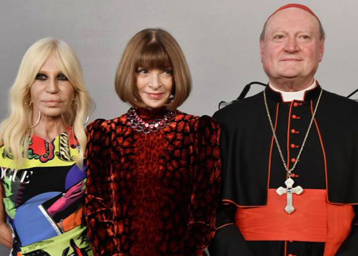 El ministro de cultura del Vaticano acompañó a Donatella Versace y Anna Wintour de Vogue el lunes para ofrecer un vistazo a las hermosas vestimentas litúrgicas del Vaticano, como mitras adornadas con joyas y tiaras, papales históricas, que protagonizarán una exposición de primavera en el Museo Metropolitano de Arte en Nueva York.