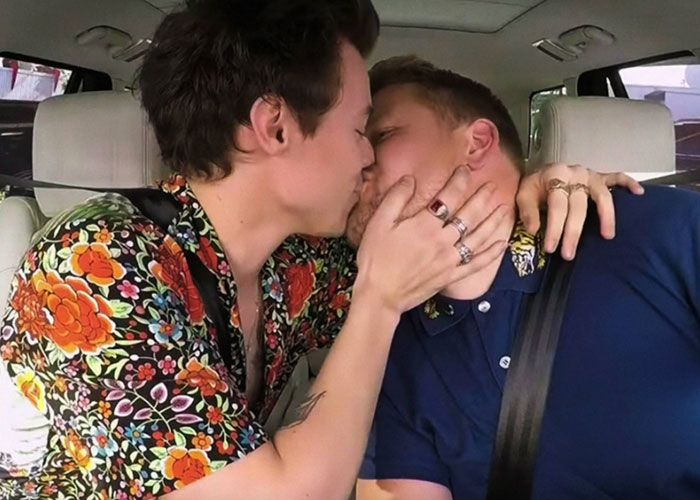 El humorista y presentador británico James Corden, conductor de los últimos Grammy y famoso globalmente por el espacio Carpool Karaoke. incluido en su programa nocturno The late late show with James Corden. En este espacio, donde se sube a un coche a cantar con estrellas del pop, besó en la boca al cantante Harry Styles, excomponente de One Direction. Corden es heterosexual –está casado con la productora de televisión Julia Carey y tienen tres hijos–. Styles tiene en su haber una abultada lista de conquistas femeninas y en 2013 negó ser bisexual en una entrevista en la edición británica de la revista masculina GQ.
