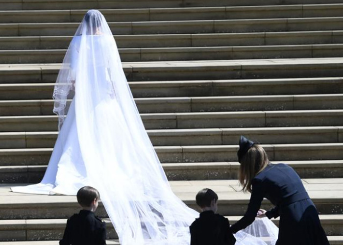 El velo contenía referencias florales a todos los 53 países del Commonwealth, el grupo de países que corresponden al antiguo Imperio británico y que se encabeza por la abuela de Enrique, la reina Isabel II. Trabajadores del palacio pasaron cientos de horas cosiendo el delicado diseño de flores en el velo, lavándose meticulosamente las manos cada media hora para mantener limpios los hilos y la seda de tul.