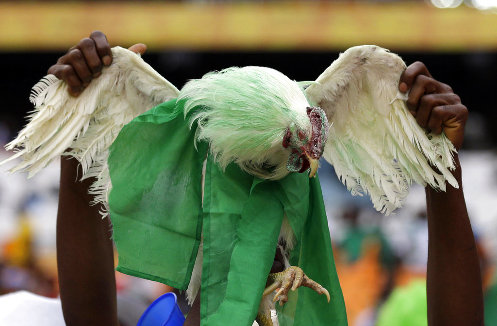 La agencia informó que en aquella ocasión la gallina estaba teñida con los colores del equipo nigeriano y que el ave estaba amarrada por las patas. El aficionado John Okoro dijo a la agencia que la prohibición era “ridícula”.