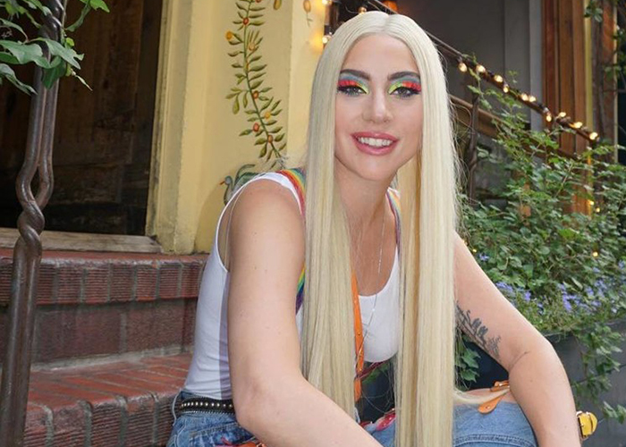 Lady Gaga completó el estilismo con una camiseta básica blanca de tirantes, unos brazaletes con los colores de la bandera y un ‘look beauty’ que tampoco pasó desapercibido entre sus fans, con su larga melena rubia con raya al medio y un maquillaje muy colorido con sombras amarillas, rosas y azules.