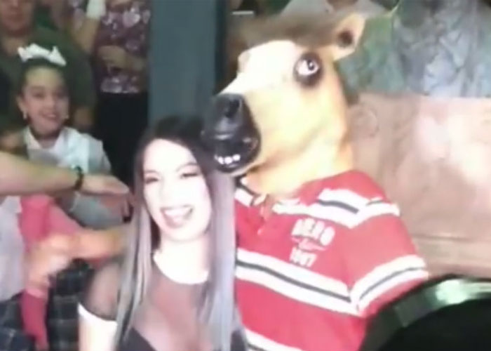La popular influencer de Badabun fue sorprendida por un chico con una máscara de caballo, ya que en diversas ocasiones la han comparado con un caballo por sus dientes.