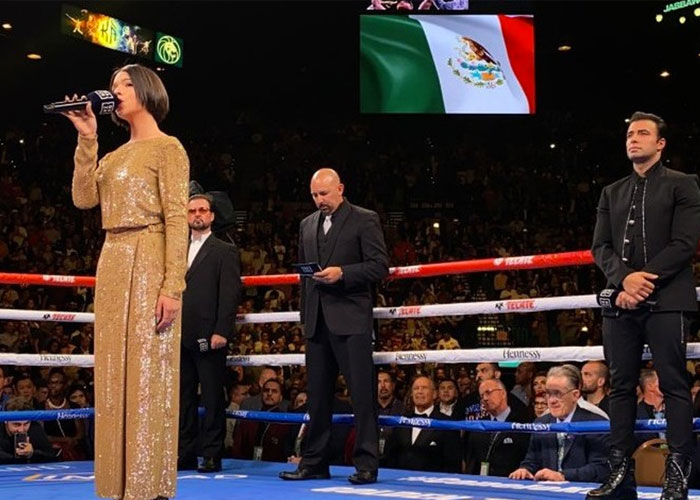 Ya en 2014 Pepe Aguilar, el padre de Ángela Aguilar, había interpretado el himno previo a la pelea de Saúl Álvarez contra Alfredo “Perro” Ángulo.