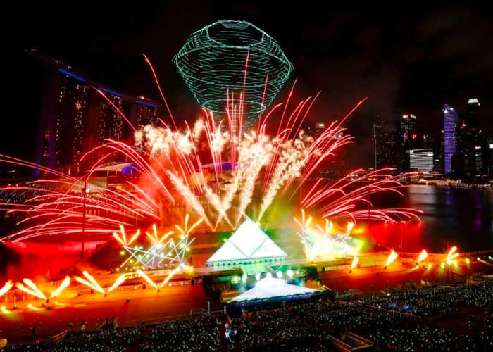 Miles de personas se congregaron en Marina Bay, Singapurshow de drones preparado por la empresa Star Island.