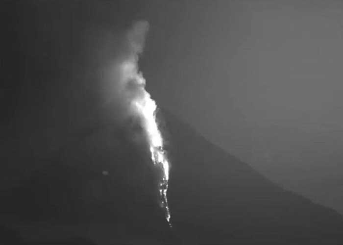 Las imágenes proporcionadas por el ECU 911 muestran el rodamiento de bloques incandescentes por el flanco sur oriental del volcán y la emisión de gas y contenido variable de ceniza. https://t.co/sz9BWsGxZl