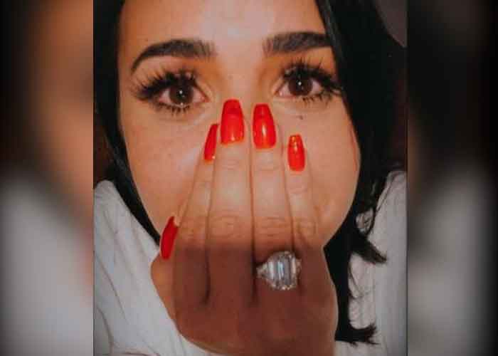 En sus Stories de Instagram, Demi publicó una foto en la que aparece llorando, con la mano sobre su rostro, dejando a la vista la sortija de corte esmeralda. Sobre la imagen, la intérprete de 27 años de edad escribió, "¡Cuando realmente comienzas a procesar tu tarde y te das cuenta de que estás comprometida con tu alma gemela!".