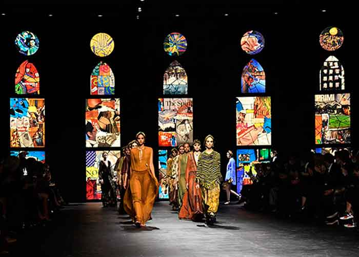 La firma eligió el reconocido Jardín de las Tullerías para crear un domo totalmente oscuro, el cual era iluminado únicamente por la luz que entraba a través de varios vitrales hechos por la artista italiana, Lucia Marcucci. "Teníamos que acercar esta colección con una idea más orientada al diseño. Estamos viviendo de una forma diferente, y quedándonos en casa más en nuestra intimidad. Nuestra ropa debe reflejar este nuevo estilo de vida", comentó Chiuri a Vogue US.