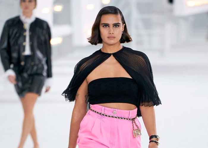 Chanel presentó vestidos de noche con los hombros descubiertos y vestidos con plumas en blanco y negro, mientras la diseñadora Virginie Viard -quien reemplazó el año pasado al fallecido Karl Lagerfeld- sacó a relucir nuevos modelos de los clásicos trajes de tweed de la marca.